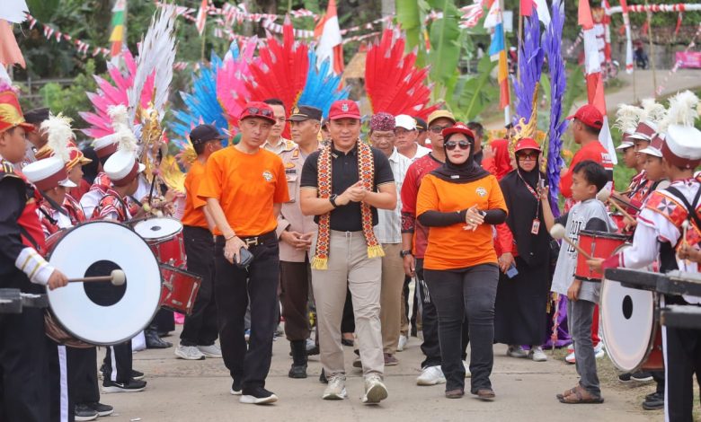 Pasalnya, kedatangan Bupati Lampung Barat bersama jajaran disambut meriah oleh masyarakat Pekon Sukapura dengan berbagai kostum dan penampilan Seni Budaya.