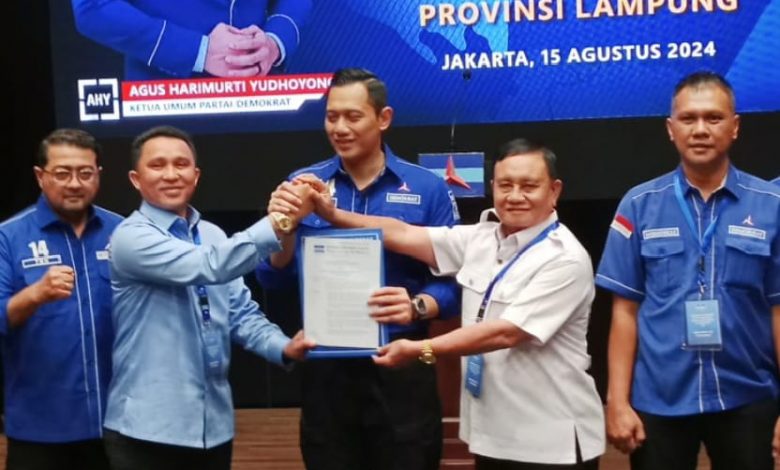 LAMPUNG BARAT – Dewan Pimpinan Pusat Partai Demokrat resmi memberikan dukungan kepada pasangan calon Bupati dan Wakil Bupati Parosil Mabsus dan Mad Hasnurin di kontestasi Kepala Daerah Lampung Barat periode 2024-2029.
