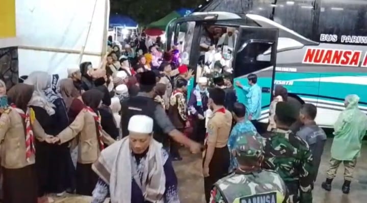 SUKABUMI – Rombongan Jama’ah haji asal kabupaten Sukabumi yang tergabung dalam Kloter 56 Tiba di Pusat Layanan Umroh dan Haji Terpadu (PLUHT) Kabupaten Sukabumi pada Selasa malam 08Juli 2025, Dari total 347 jama’ah yang berangkat ke Tanah Suci,dan sebanyak 347 orang jamaah haji yang kembali ke Indonesia dalam keadaan selamat dan sehat.