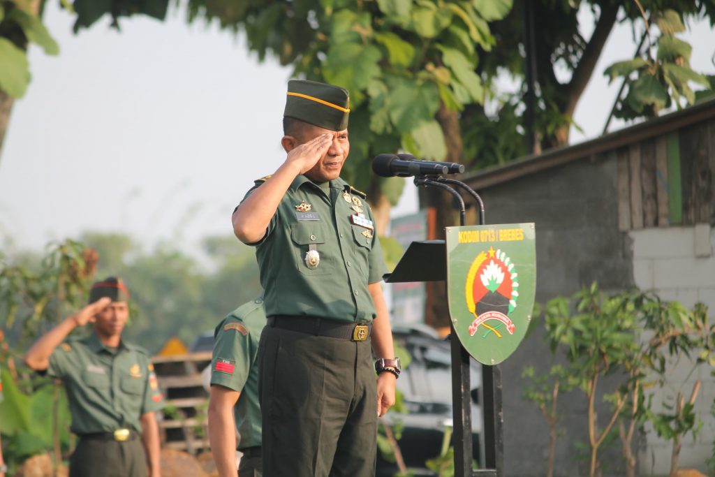 Membacakan amanat Panglima TNI Jenderal TNI Agus Subiyanto, S.E., M.Si., Kasdim 0713/Brebes Mayor Inf Drs. Abdul Asis Lallo mengajak seluruh anggota TNI untuk terus mengikatkan keimanan dan ketaqwaan kepada Tuhan Yang Maha Esa sebagai landasan moral pengabdian kepada bangsa dan Negara.