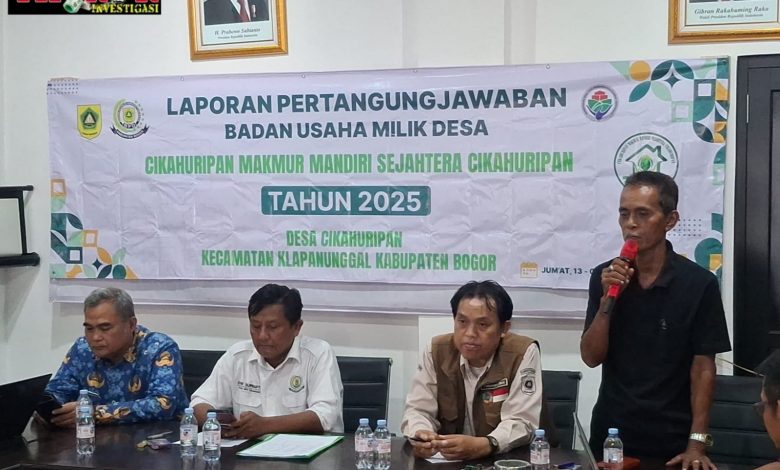BOGOR – Suasana serius bercampur panasnya cuaca mewarnai pelaksanaan Acara Laporan Pertanggungjawaban (LPJ) BUMDes Makmur Sejahtera Cikahuripan Tahun Buku 2025 yang digelar di Aula Kantor Desa Desa Cikahuripan, Senin (27/4/2026).