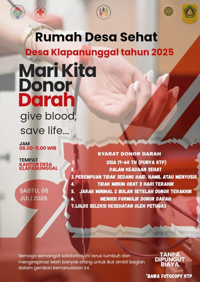 Dengan mengusung tema “Give Blood, Save Life – Sehat Bersama Desa Klapanunggal”, kegiatan ini sukses menarik partisipasi ratusan warga dari berbagai kalangan, mulai dari pemuda, kader kesehatan, tokoh masyarakat, hingga perangkat desa. Kegiatan ini menjadi bentuk nyata kolaborasi lintas sektor dalam mewujudkan desa yang sehat dan tangguh.