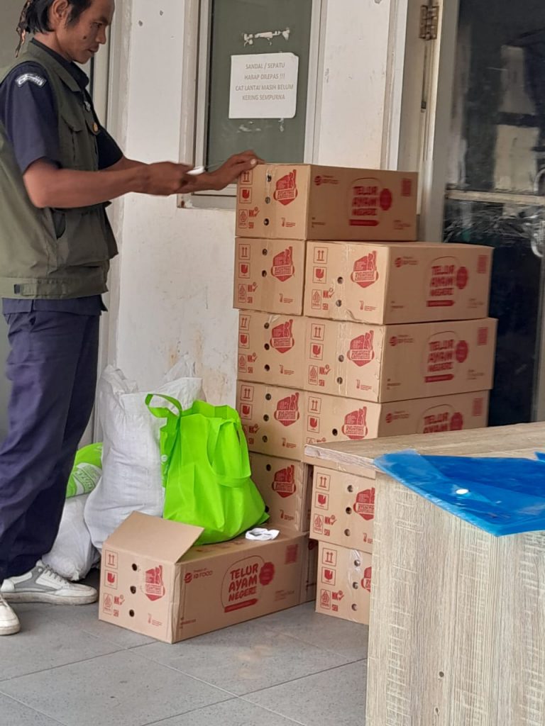 Waldi Akbar Yacob selaku kepala Desa Tanjung sari salurkan bantuan pangan berupa daging Ayam dan juga telur.