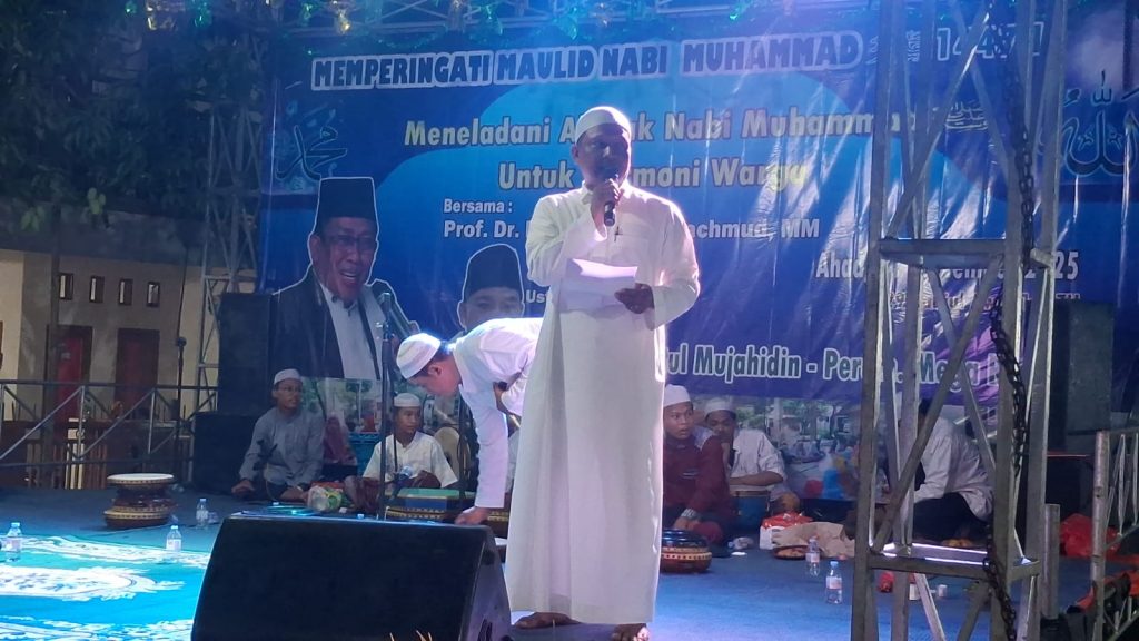 BOGOR – Suasana penuh kekhidmatan sekaligus keceriaan menyelimuti Perumahan Mega Residence, Desa Cikahuripan, Kecamatan Klapanunggal, Minggu malam (21/09/2025) usai salat Isya. Ratusan warga berkumpul dalam rangka Peringatan Maulid Nabi Muhammad SAW 1447 H yang mengusung tema “Meladani Akhlak Nabi Muhammad SAW, Untuk Harmonis Warga”.