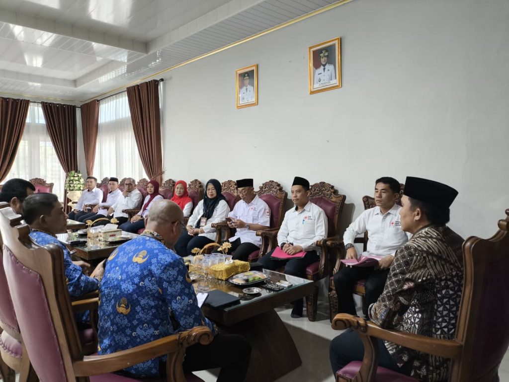 LAMPUNG BARAT – Bupati Lampung Barat, Parosil Mabsus menerima audiensi pengurus Palang Merah Indonesia (PMI) Kabupaten Lampung Barat di Rumah Dinas, Pekon Kubu Perahu, Kecamatan Balik Bukit, Senin (27/4).