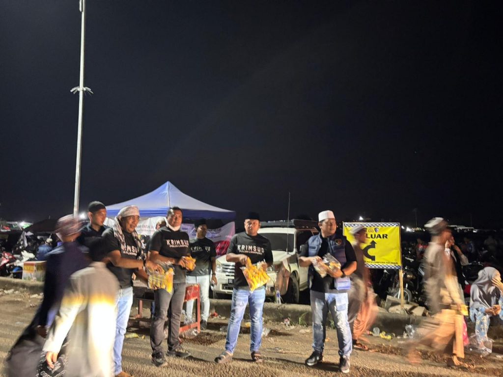 Polda Lampung Peduli, Ditreskrimsus Bagikan Snack Kepada Jemaah Ijtimah Tabligh Akbar