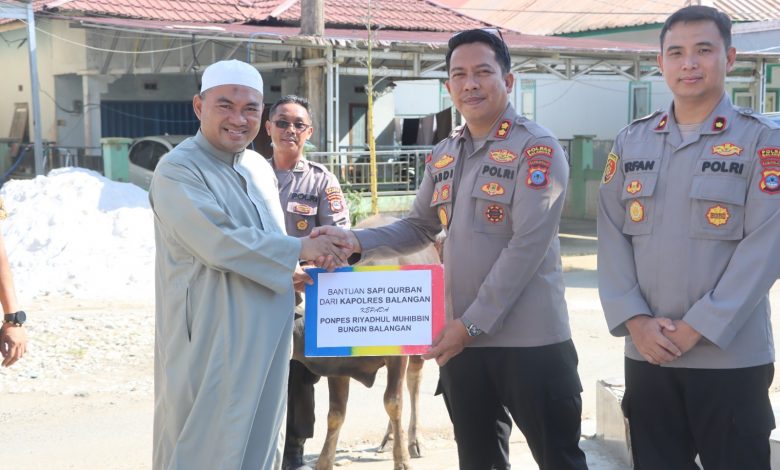 BALANGAN – Polres Balangan, Polda Kalsel – Kapolres Balangan AKBP Dr. Yulianor Abdi, S.H.,S.I.K.,M.H. menyalurkan dua ekor sapi kurban ke Pondok Pesantren Riyadhul Muhibbin Bungin dan Pondok Pesantren Nurul Muhibbin Mampari, Kamis (5/6/2025).