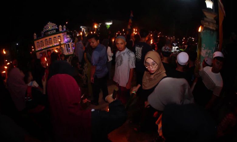Sambut Idul Fitri, Cahtran7 dan Oyot Bengkong Desa Sumber Rejeki Gelar Pawai Obor dan Takbir Keliling
