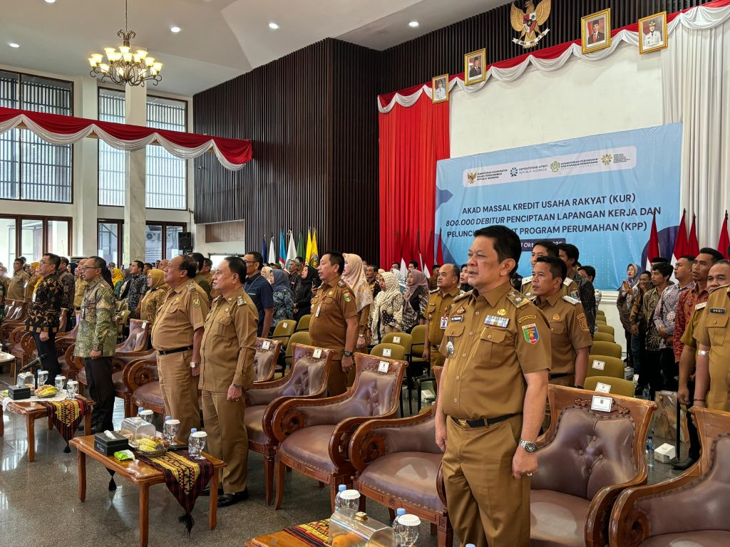 LAMPUNG BARAT — Wakil Bupati Lampung Barat, Drs. Mad Hasnurin, menghadiri pelaksanaan Akad Massal Kredit Usaha Rakyat (KUR) 800.000 Debitur Penciptaan Lapangan Kerja dan Peluncuran Kredit Program Perumahan (KPP), yang digelar secara nasional dan serentak secara daring di seluruh Indonesia.