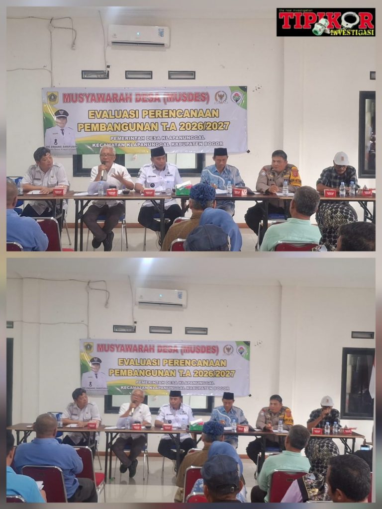 BOGOR – Semangat membangun desa terasa kuat di Aula Pemerintah Desa Klapanunggal, Kecamatan Klapanunggal, Kabupaten Bogor, saat digelarnya Musyawarah Desa (Musdes) dengan agenda evaluasi dan perencanaan pembangunan Tahun Anggaran 2026/2027, Rabu (29/04/2026).
